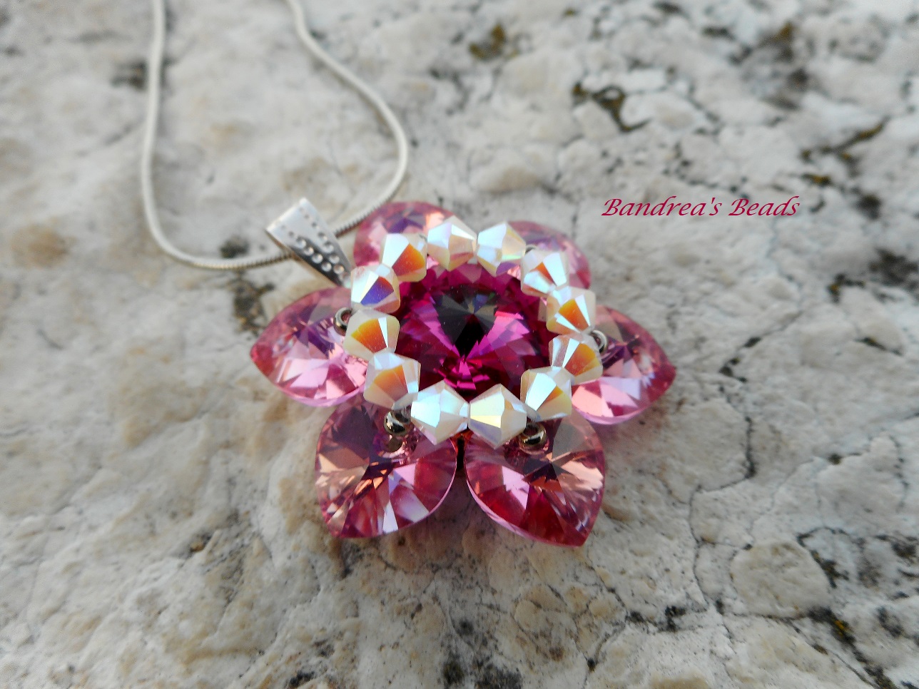 Szidonia Petki gyűrű mintájából készítettem ezt a medált. Annyit változtattam rajta, hogy nem tettem köré annyi sor 15-ös kását amennyit Ő. Úgy éreztem nagyon jó stabil így is és legalább a kőből is több látszik.